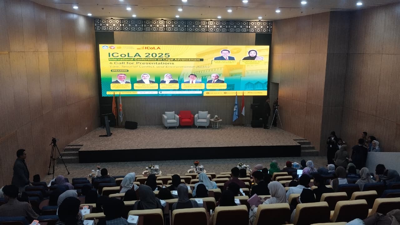 JAMBI – Tim Multimedia dari Unit Penunjang Akademik Teknologi Informasi dan Komunikasi (UPATIK) Universitas Jambi (UNJA) memberikan dukungan penuh dalam menyukseskan acara Seminar Internasional “International Conference on Legal Advancement (ICoLA)” dengan tema Law, Tenurial Conflict, and Enviromental Justice, yang berlangsung di Ruang Auditorium Gedung Graha Singedekane Kampus UNJA Telanai, pada Selasa, (21/10/2025).
